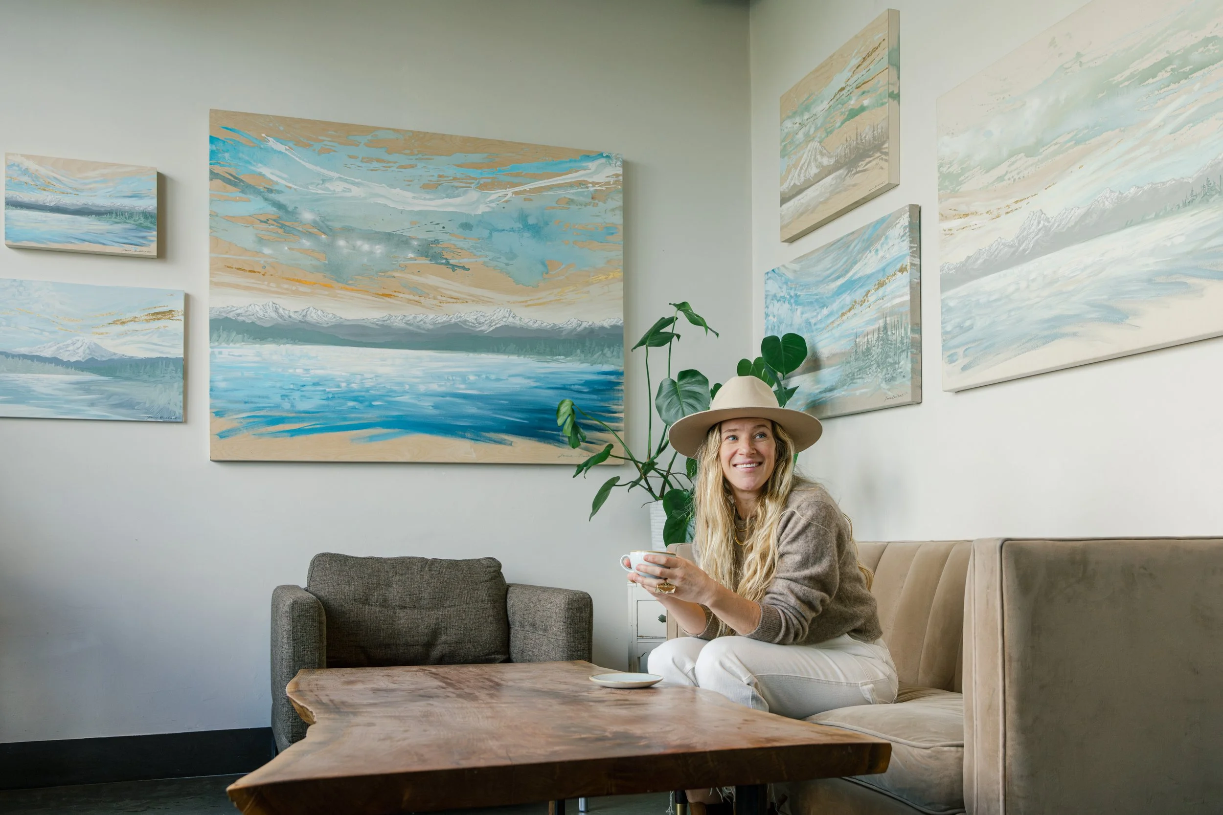 Join me for a morning of coffee, pastries and creativity in my Painted Peaks Workshop, at my Gallery in Downtown Edmonds. Learn acrylic painting techniques, color mixing, composition, and even how to add that metallic touch while painting the Olympic Mountains on the Puget Sound while surrounded by community just steps from the Edmonds waterfront view.