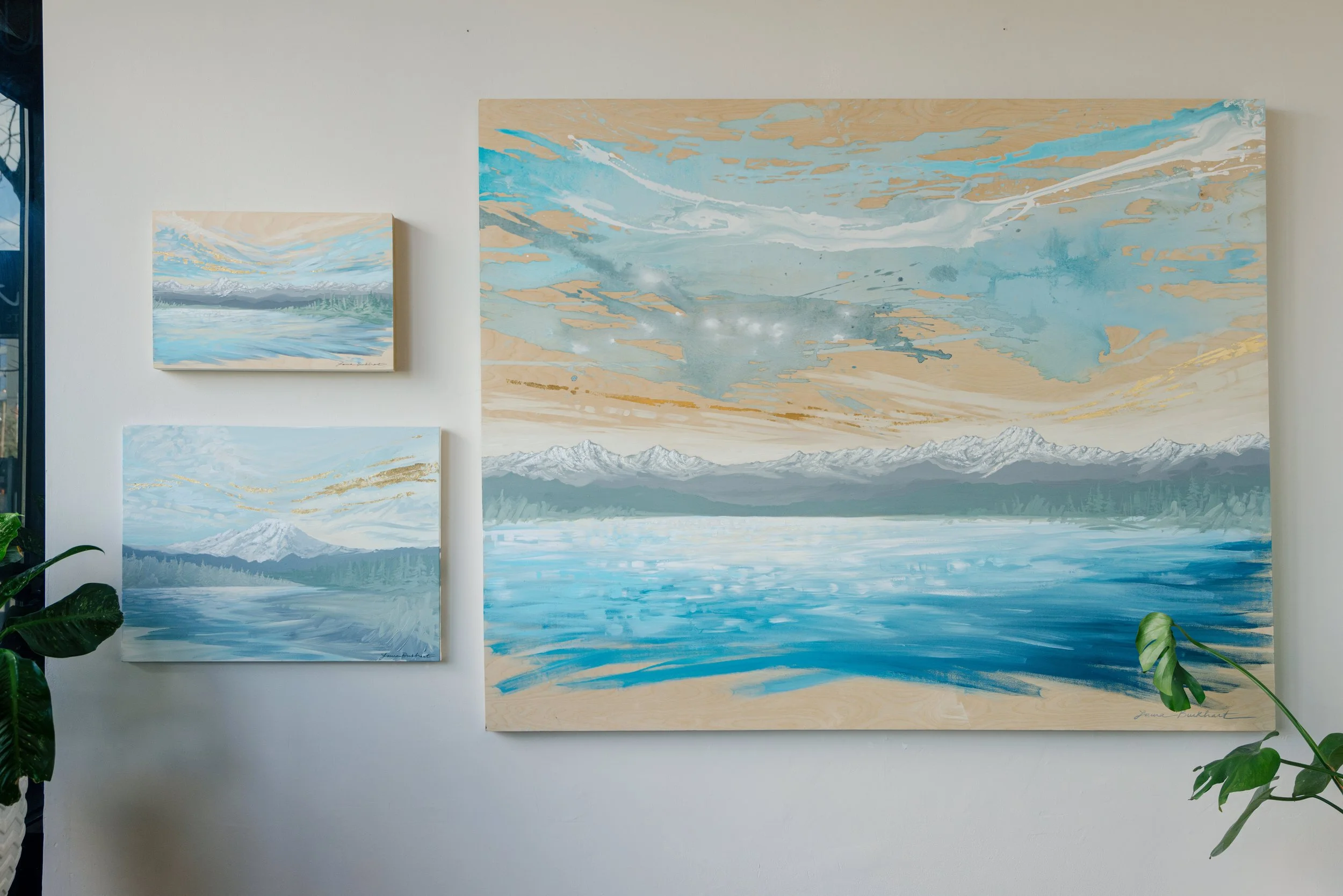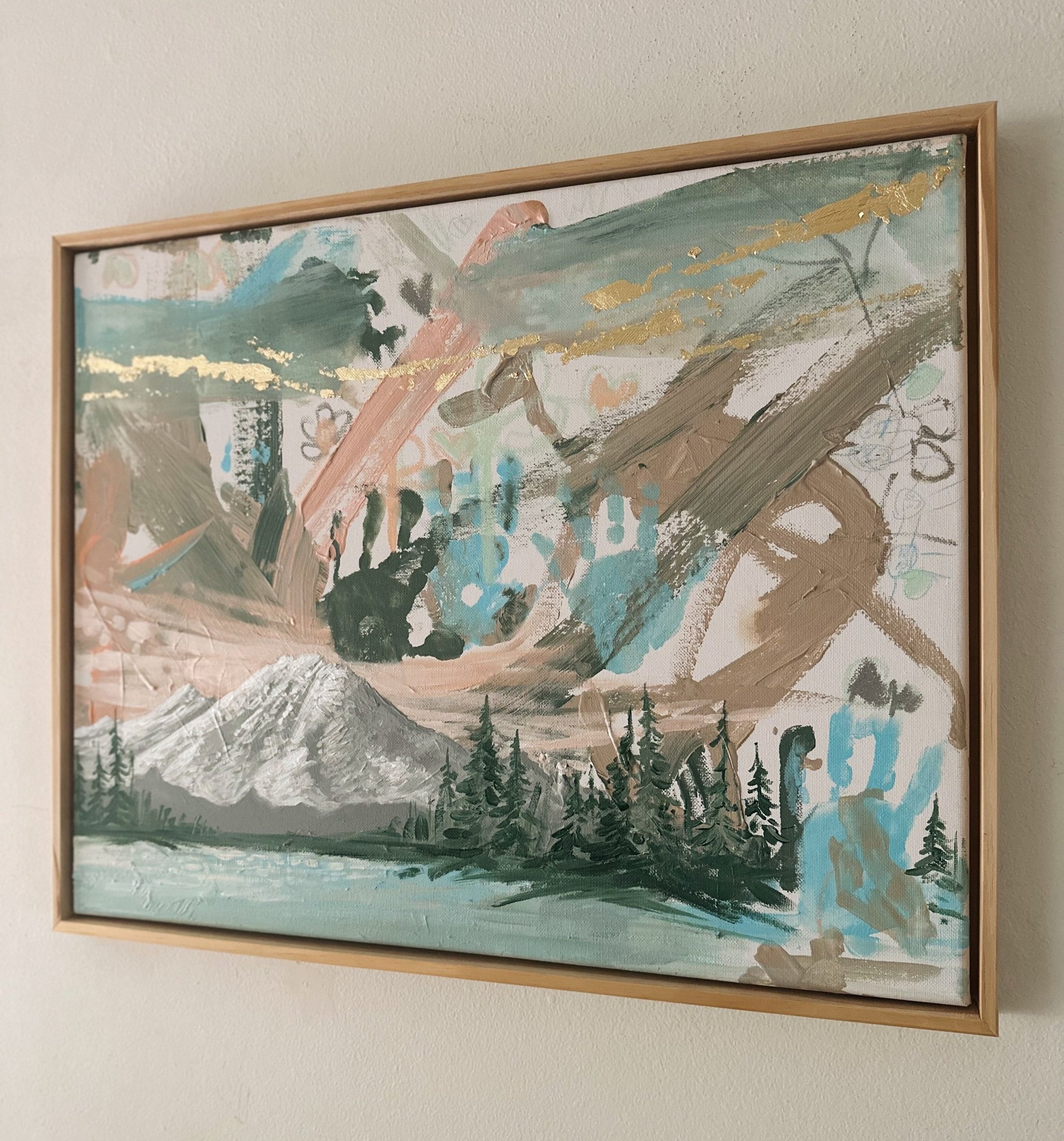 I’ll provide a curated color palette for you and your littles to paint, and then I’ll add my own signature painted PNW Landscape and metallic gold leaf for a truly unique work of art to cherish for a lifetime.